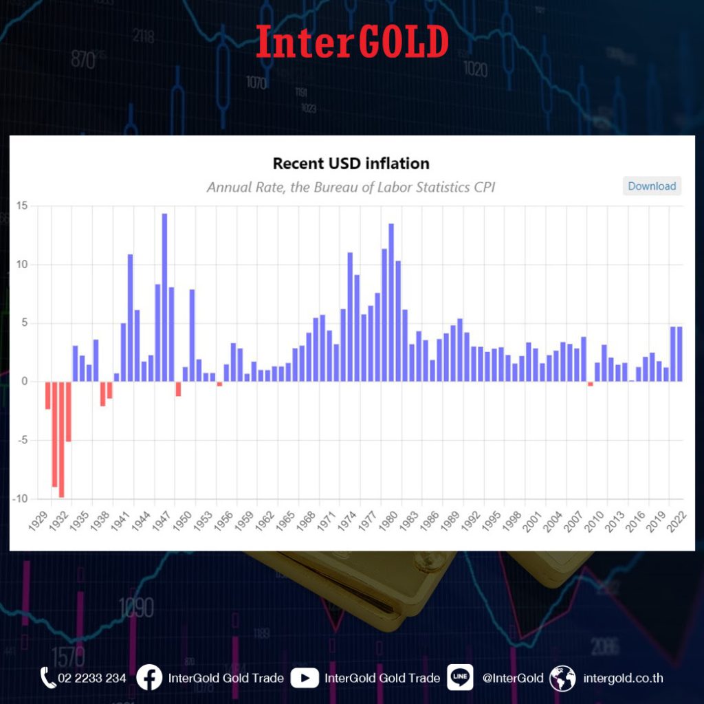 จากรูปแสดงเงินเฟ้อสหรัฐฯ ในอดีต