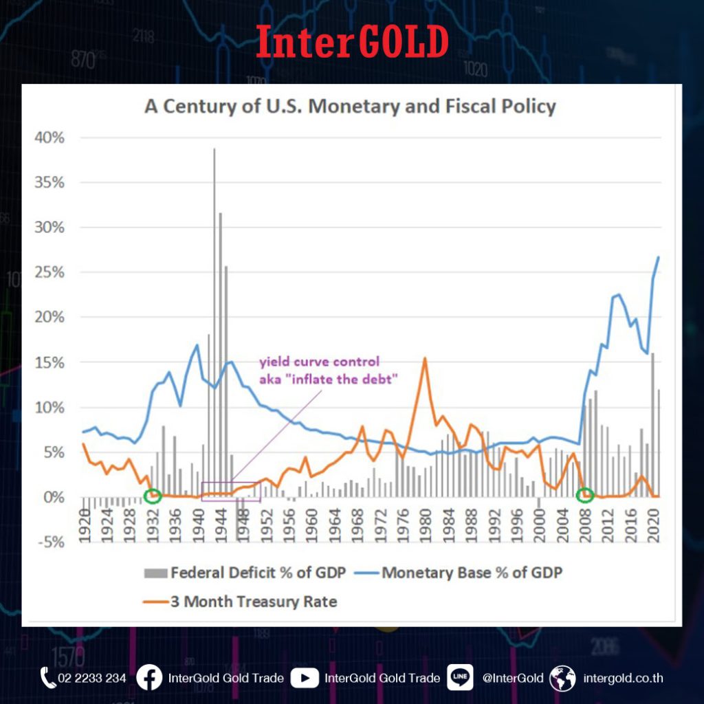 มาถึงตอนนี้ เราได้ข้อสรุปแล้วว่า แนวโน้มความขัดแย้งระหว่างมหาอำนาจของโลกกำลังทวีความเข้มข้นขึ้น การค้าจะไม่เสรี และจะทำให้เศรษฐกิจถดถอย รัฐจะต้องการใช้เงินจำนวนมาก ไม่ว่าจะเพื่อการสงคราม หรือ เพื่อกระตุ้นเศรษฐกิจ ก็ตาม ผลลัพธ์สุดท้ายคือ การขาดดุลมหาศาลเมื่อเทียบกับ GDP และมันจะทำให้เฟดไม่สามารถขึ้นดอกเบี้ยเพื่อสกัดเงินเฟ้อได้จริง ๆ