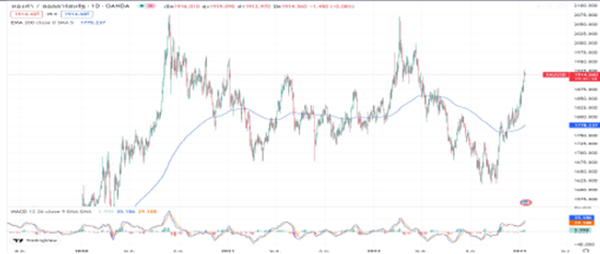 ทองคำทรงตัว $1920 ตลาดกำลังจับตาผลประกอบการของบริษัทจดทะเบียนราคาทองคำทรุงตัวหลังจากปรับตัวสูงขึ้นทดสอุบ $1920 ในช่วงต้นสัปดาห์จากตัวเลขการคาดการณ์เงินเฟ้อของผู้บริโภคที่คาดว่าจะน้อยลงในอนาคต ขณะที่ในสัปดาห์นี้เป็นช่วงประกาศผลประกอบการของบริษัทจดทะเบียนในไตรมาส 4 ที่ผ่านมานำโดยกลุ่มธนาคารพาณิชย์ ในเบื้องต้นหลายๆธนาคารยังมีรายได้ที่เติบโต แต่มีการตั้งสำรองไว้รองรับเศรษฐกิจที่อาจจะชะลอตัวลงในอนาคต ทำให้ผลกำไรบางธนาคารออกมาแย่ลง
