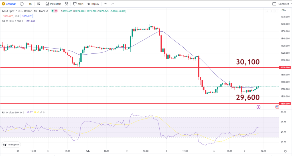 ทองคำตลาดนิวยอร์กปิดบวกในวันจันทร์ (6 ก.พ.) โดยนักลงทุนช้อนซื้อหลังจากทองคำร่วงลงรุนแรงถึง 54.2 ดอลลาร์ หรือ 2.81% สู่ระดับ 1,876.6 ดอลลาร์/ออนซ์เมื่อวันศุกร์ที่ผ่านมา ซึ่งเป็นระดับต่ำสุดในรอบ 3 สัปดาห์ สำหรับปัจจัยที่ทำให้ทองคำร่วงลงอย่างหนักในวันศุกร์นั้น มาจากการแข็งค่าของดอลลาร์ และการพุ่งขึ้นของอัตราผลตอบแทนพันธบัตรรัฐบาลสหรัฐ หลังสหรัฐเปิดเผยตัวเลขจ้างงานที่แข็งแกร่งเกินคาด