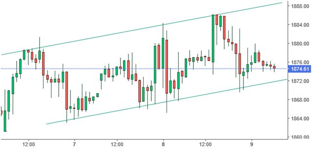 ลักษณะการเคลื่อนไหวยังเป็นการเคลื่อนที่ออกไปทางด้านข้างโดยค่อยๆยกฐานสูงขึ้น และยังมีกรอบแนวรับหลักเหมือนเดิมคือ 1,860 ดอลลาร์ นักลงทุนที่รับความเสี่ยงได้สูงอาจแบ่งเงินลงทุนเป็นหลายส่วนมาตั้งรอซื้อตามแนวรับเท่านั้นและขายทำกำไรเมื่อราคามีการดีดตัวในกรอบการซื้อขายนี้ โดยตัดขาดทุนเมื่อราคาลดลงต่ำกว่า 1,850 ดอลลาร์