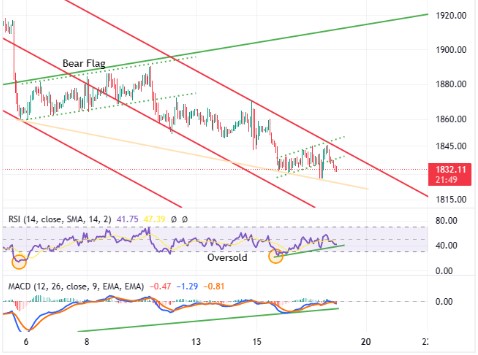 ทั้งนี้อาจพิจารณาแบ่งทองคำปิดสถานะขายทำกำไรบางส่วน หากราคาทองคำอ่อนตัวลงไม่หลุดแนวรับโซน 1,826-1,824 ดอลลาร์ต่อออนซ์ แต่หากยืนไม่ได้ได้ถือสถานะขายต่อ