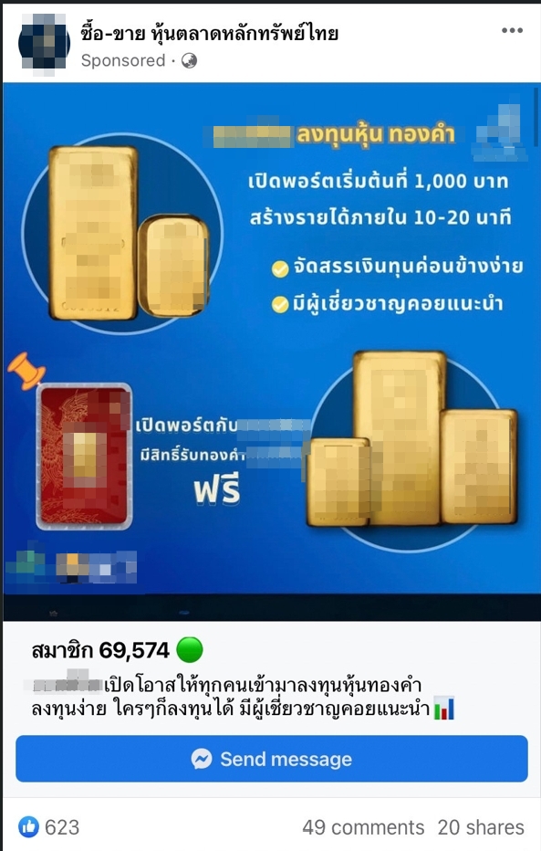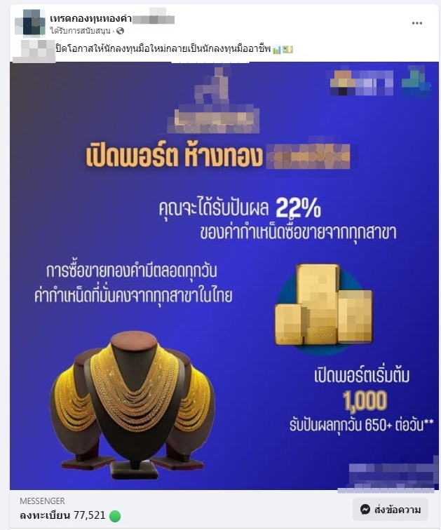 สมาคมค้าทองคำ วอนภาครัฐคุมเข้มโจรไซเบอร์ หลังพบแอบอ้างชื่อผู้ค้าฯ หลอกลวงลงทุนทองคำ ด้าน DES เตรียมร้องศาลปิด Facebook ในไทย