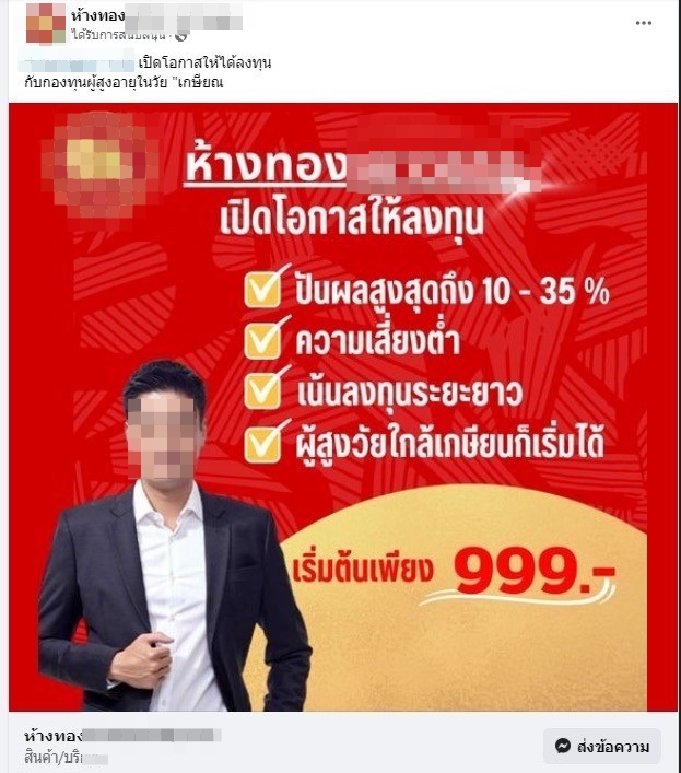 ทั้งนี้ การลงทุนในลักษณะดังกล่าวไม่น่าจะเกี่ยวกับธุรกิจค้าทองคำ ที่จะเป็นการขายทองคำผ่านทางหน้าร้านทอง หรือการขายทองคำผ่านทางออนไลน์ที่มีการส่งมอบทองจริงเท่านั้น