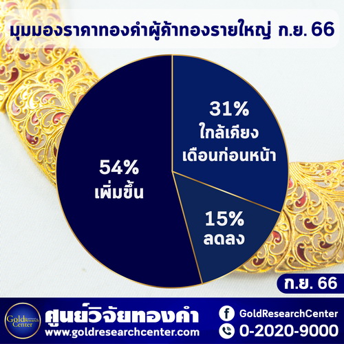 ทั้งนี้ แม้ว่าราคาทองคำจะปรับตัวเพิ่มขึ้นต่อเนื่อง แต่จากการสอบถามความต้องการซื้อทองคำในช่วงเดือน ก.ย. จากกลุ่มตัวอย่าง 324 ราย พบว่า 168 ราย หรือเทียบเป็น 52% ยังคงต้องการซื้อทองคำ อีก 96 ราย หรือเทียบเป็น 30% จะไม่ซื้อทองคำ ที่เหลือ 60 ราย หรือเทียบเป็น 18% ไม่แน่ใจว่าจะซื้อทองคำในเดือนนี้หรือไม่