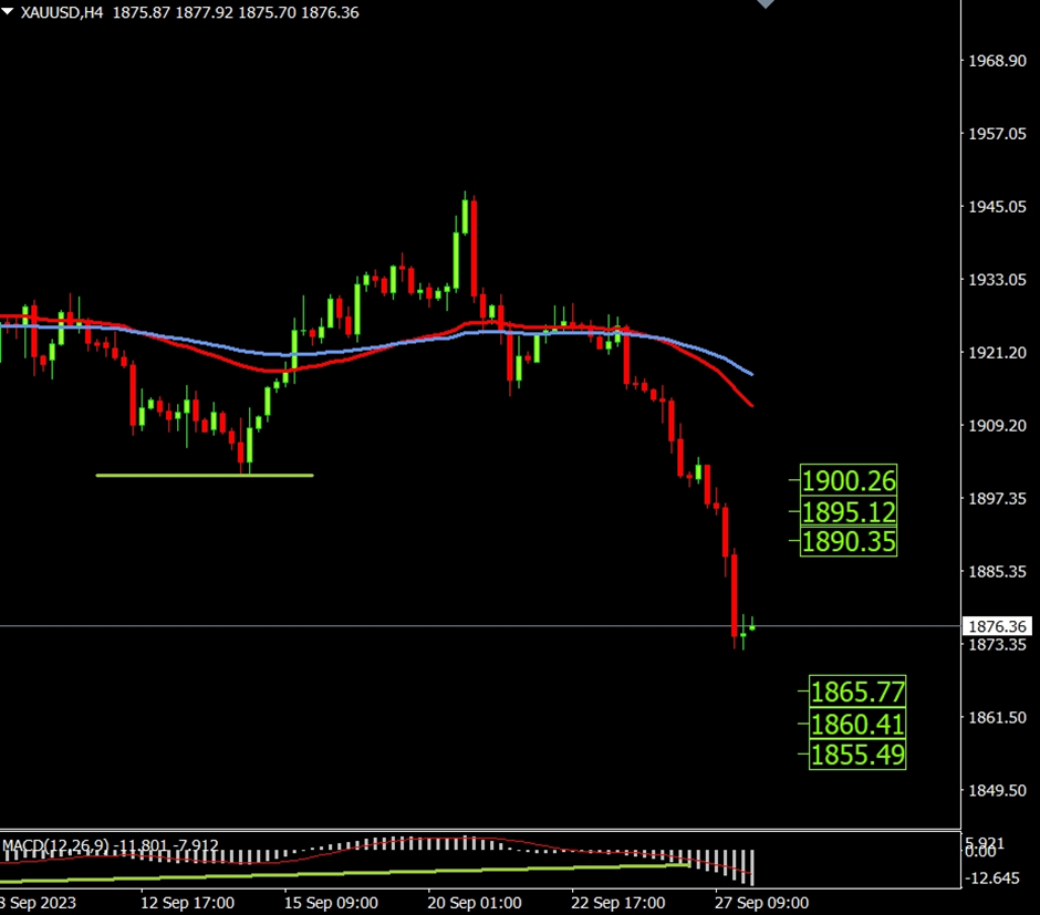 ราคาทองคำตลาดนิวยอร์กปิดร่วงลงแตะระดับต่ำสุดในรอบกว่า 6 เดือนในวันพุธที่ผ่านมาเนื่องจากการแข็งค่าของดอลลาร์และอัตราผลตอบแทนพันธบัตรรัฐบาลสหรัฐอายุ 10 ปีพุ่งขึ้นแตะระดับสูงสุดในรอบกว่า 15 ปี ขานรับคาดการณ์ที่ว่า ธนาคารกลางสหรัฐ (เฟด) จะคงอัตราดอกเบี้ยที่ระดับสูงเป็นเวลานานเพื่อสกัดเงินเฟ้อ ที่เป็นปัจจัยกดดันตลาด นอกจากนี้ การที่สัญญาทองคำดิ่งหลุดจากแนวรับที่ระดับ 1,900 ดอลลาร์ยังเป็นสาเหตุที่ทำให้เกิดแรงขายทางเทคนิคลงมาด้วย ขณะเดียวกันนักลงทุนจับตาความคืบหน้าของสภาคองเกรสในการผ่านร่างงบประมาณ เพื่อหลีกเลี่ยงภาวะชัตดาวน์ในวันที่ 1 ต.ค.นี้