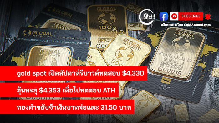 gold spot ดีดแตะ $4,375 ก่อนถูกเทแรง แม้ CPI จะต่ำกว่าคาด แต่ นลท.ยังกังวลพร้อมปรับพอร์ตลดความเสี่ยงก่อนปิดปี ราคาทองคำไทย เช้านี้ยังเคลื่อนไหวในแดนลบ เปิดตลาดลดลง 50 บาท ก่อนจะปรับลงอีก 50 บาทในอีกชั่วโมงถัดมา ทำให้ราคาขายออกทองคำแท่ง ของ สมาคมค้าทองคำ ประกาศ ณ เวลา 10.30 น. อยู่ที่ 64,300 บาท ส่วนราคารับซื้อ 64,200 บาท ขณะที่ราคาทองรูปพรรณราคาขายออก 65,100 บาท ส่วนราคารับซื้อ 62,914 บาท เงินบาท 31.45…