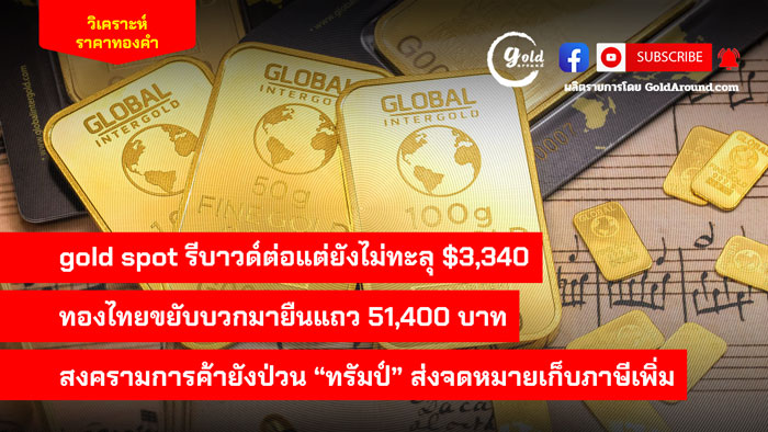 gold spot พยายามรีบาวด์ในระยะสั้น หลัง ปธน.ทรัมป์ ร่อน จม.เก็บภาษีอีก 6 ประเทศ แต่หากยืน $3,340 ไม่ได้ อาจพักฐานต่อเนื่อง ภาพรวมการเคลื่อนไหวของราคาทองคำไทย เช้านี้ ( 10 ก.ค.) สมาคมค้าทองคำ ประกาศราคาแรกของวันเพิ่มขึ้น 250 บาท ทำให้ราคาขายออกทองคำแท่ง 96.5 ณ 10.35 น. อยู่ที่ 51,200 บาท ส่วนราคารับซื้อ 51,100 บาท ขณะที่ราคาทองรูปพรรณราคาขายออก 52,000 บาท ส่วนราคารับซื้อ 50,073.48 บาท คำนวณจากเงินบาทที่…