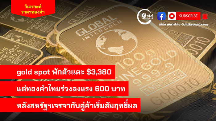 gold spot พักตัวแตะ $3,380 แต่ทองคำไทยร่วงลงแรง 600 บาท หลังสหรัฐเจรจากับคู่ค้าเริ่มสัมฤทธิ์ผล มาดูภาพรวมการเคลื่อนไหวของราคาทองคำไทย เช้านี้ ( 24 ก.ค.) สมาคมค้าทองคำ ประกาศราคาขายออกทองคำแท่ง 96.5 ณ เวลา 09.30 น. อยู่ที่ 51,550 บาท ส่วนราคารับซื้อ 51,450 บาท ขณะที่ราคาทองรูปพรรณราคาขายออก 52,350 บาท ส่วนราคารับซื้อ 50,422.16 บาท คำนวณจากเงินบาทที่ 32.15 บาทต่อดอลลาร์ ด้าน ฮั่วเซ่งเฮง มองว่า ราคาทองในประเทศกลับตัวเป็นขาขึ้นตามทองโลก แต่เงินบาทยังแข็งค่าต่อเนื่อง…