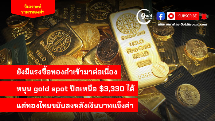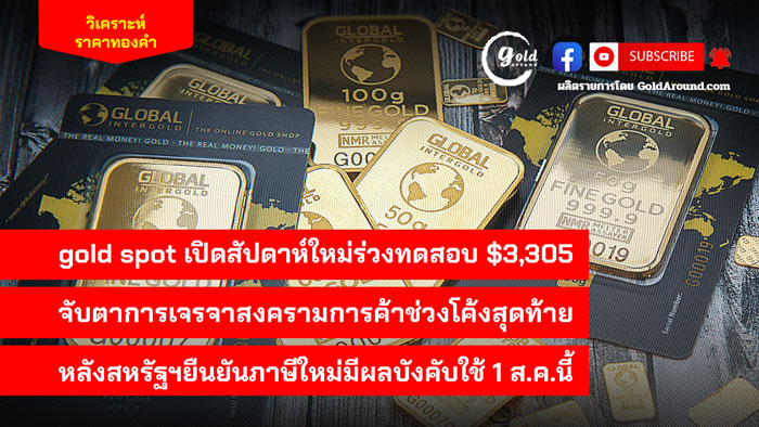 gold spot เปิดสัปดาห์ใหม่ร่วงทดสอบ $3,305 จับตาการเจรจาสงครามการค้าช่วงโค้งสุดท้าย หลังสหรัฐยืนยันภาษีใหม่มีผลบังคับใช้ 1 ส.ค.นี้ มาดูภาพรวมการเคลื่อนไหวของราคาทองคำไทย สมาคมค้าทองคำประกาศราคาขายออกทองคำแท่ง 96.5 ณ 10.40 น. อยู่ที่ 51,000 บาท ส่วนราคารับซื้อ 50,900 บาท ขณะที่ราคาทองรูปพรรณราคาขายออก 51,800 บาท ส่วนราคารับซื้อ 49,876.40 บาท คำนวณจากเงินบาทที่ 32.49 บาทต่อดอลลาร์ ด้าน ฮั่วเซ่งเฮง มองว่า ราคาทองในประเทศยัง Sideway ตามทองโลก ในขณะที่ค่าเงินบาทกลับมาอ่อนค่าในระยะสั้น สำหรับนักเก็งกำไรที่รับความเสี่ยงได้สูง แนะนำเข้าซื้อสะสมแนวรับที่ระดับ 50,900 และ…