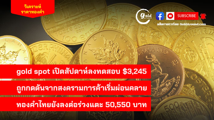 gold spot เปิดสัปดาห์ลงทดสอบ $3,245 ถูกกดดันจากสงครามการค้าเริ่มผ่อนคลาย ทองคำไทยยังลงต่อร่วงแตะ 50,550 บาท ภาพรวมการเคลื่อนไหวของราคาทองคำไทย เปิดตลาดเช้านี้( 30 มิ.ย.) สมาคมค้าทองคำ ประกาศปรับราคาขายออกทองคำแท่ง 96.5 ลดลง 100 บาท ก่อนจะปรับขึ้น 50 บาท 2 ครั้งและปรับลด 50 บาท 1 ครั้ง ทำให้ราคา ณ 10.15น. อยู่ที่ 50,550 บาท ส่วนราคารับซื้อ 50,450 บาท ขณะที่ราคาทองรูปพรรณราคาขายออก 51,350 บาท ส่วนราคารับซื้อ…