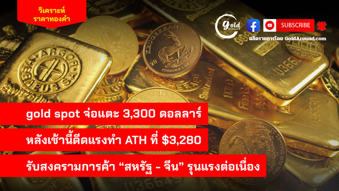 gold spot จ่อแตะ 3,300 ดอลลาร์ หลังเช้านี้ดีดแรงทำ ATH ที่ $3,280 รับสงครามการค้า “สหรัฐ-จีน” รุนแรงต่อเนื่อง ดำเนินรายการโดย อนุสรณ์ แก้วประจันทร์ บรรณาธิการข่าว goldaround.9na.me/ มาดูราคาทองคำไทยเช้านี้เปิดตลาดผันผวน โดย สมาคมค้าทองคำ ประกาศราคาแรกของวัน ( 16 เม.ย.) เพิ่มขึ้น 450 บาท ก่อนที่ในอีกชั่วโมงถัดมาจะประกาศปรับราคาลง 50 บาท 2 ครั้ง ปรับราคาขึ้น 50 บาท 2 ครั้ง ทำให้ราคาขายออกทองคำแท่ง 96.5 ณ…