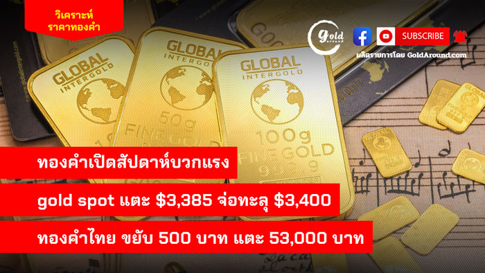 ทองคำเปิดสัปดาห์บวกแรง gold spot แตะ $3,385 จ่อทะลุ $3,400 ทองคำไทย ขยับ 500 บาท แตะ 53,000 บาท ดำเนินรายการโดย อนุสรณ์ แก้วประจันทร์ บรรณาธิการข่าว goldaround.9na.me/ มาดูภาพรวมการเคลื่อนไหวของราคาทองคำไทยในช่วงครึ่งวันแรก ถือว่าขยับแรงโดยราคาแรก สมาคมค้าทองคำ ประกาศราคาแรกของวัน ( 21 เม.ย.) เพิ่มขึ้น 500 บาท ก่อนที่จะปรับราคาขึ้น 50 บาท 2 ครั้ง ลดลง 50 บาท 1 ครั้ง ทำให้ราคาขายออกทองคำแท่ง…