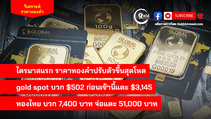 ไตรมาสราคาทองคำปรับตัวขึ้นสุดโหด gold spot บวก $502 ก่อนเช้านี้แตะ $3,145 ทองไทย บวก 7,400 บาท จ่อแตะ 51,000 บาท ดำเนินรายการ โดย อนุสรณ์ แก้วประจันทร์ บรรณาธิการข่าว goldaround.9na.me/ มาดูราคาทองคำไทยวันนี้ (1 เม.ย.) สมาคมค้าทองคำ ประกาศราคาแรกของวันเพิ่มขึ้นแรง 450 บาท ก่อนอีกชั่วโมงถัดมาจะปรับเพิ่ม 50 บาท อีก 4 ครั้ง ทำให้ราคาขายออกทองคำแท่ง 96.5 ณ เวลา 10.00 น. อยู่ที่…
