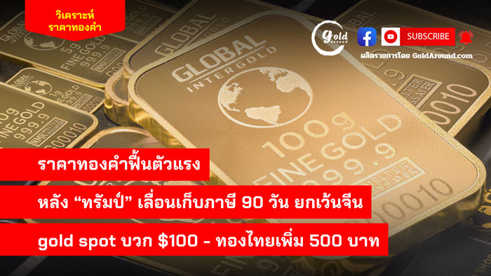 ราคาทองคำฟื้นตัวแรง หลัง“ทรัมป์”เลื่อนเก็บภาษี 90 วัน ยกเว้นจีน gold spot บวก $100 – ทองไทยเพิ่ม 500 บาท ดำเนินรายการ โดย อนุสรณ์ แก้วประจันทร์ บรรณาธิการข่าว goldaround.9na.me/ ราคาทองคำไทยกลับมาสดใส หลังปรับบวกต่อเนื่องวานนี้บวก 250 บาท และเช้านี้ สมาคมค้าทองคำ ประกาศราคาแรกของวัน ( 9 เม.ย.) เพิ่มขึ้น 300 บาท ก่อนที่อีกชั่วโมงถัดมาจะปรับเพิ่มรวม 200 บาท ทำให้ราคาขายออกทองคำแท่ง 96.5 ณ เวลา 10.15…
