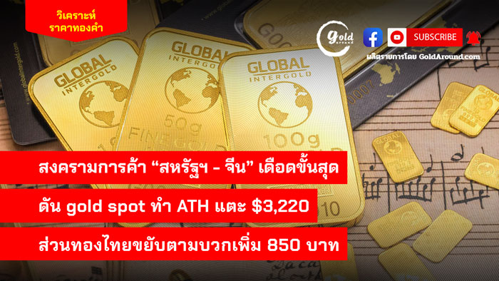 สงคราการค้า “สหรัฐ-จีน” เดือดขั้นสุด ดัน gold spot ทำ ATH แตะ $3,220 ส่วนทองไทยขยับตามบวกเพิ่ม 850 บาท ดำเนินรายการ โดย อนุสรณ์ แก้วประจันทร์ บรรณาธิการข่าว goldaround.9na.me/ ราคาทองคำไทยยังคงบวกต่อเนื่อง แม้จะแรงสู้ราคา gold spot ไม่ได้ เพราะเงินบาทกลับมาแข็งค่า แต่เช้านี้สมาคมค้าทองคำ ประกาศราคาแรกของวัน ( 11 เม.ย.) เพิ่มขึ้น 800 บาท ก่อนที่อีกชั่วโมงถัดมาจะปรับเพิ่มอีก 50 บาท ทำให้ราคาขายออกทองคำแท่ง 96.5 ณ เวลา…