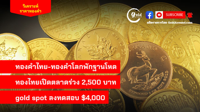 ทองคำไทย-ทองคำโลกพักฐานโหด ทองไทยเปิดตลาดร่วง 2,500 บาท gold spot ลงทดสอบ $4,000 มาดูของราคาทองคำไทยเปิดตลาดเช้านี้ ( 22 ต.ค.) สมาคมค้าทองคำ ประกาศปรับราคาทองคำลงแรง 2500 บาท ก่อนจะปรับขึ้นมา 200 บาท ทำให้ราคาขายออกทองคำแท่ง 96.5 เวลา 10.30 น. อยู่ที่ 63,950บาท ส่วนราคารับซื้อ 63,850 บาท ขณะที่ราคาขายออกทองรูปพรรณอยู่ที่ 64,750บาท ส่วนราคารับซื้ออยู่ที่ 62,580.48 บาท คำนวณจากเงินบาทที่ 32.79 บาทต่อดอลลาร์ ทาง ฮั่วเซ่งเฮง มองว่า…